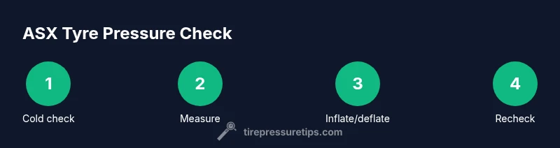 Maintaining the correct mitsubishi asx tyre pressure is a simple habit that yields big safety and efficiency gains. According to Tire Pressure Tips, the right pressures reduce tire wear, improve fuel economy, and enhance handling across wet and dry roads. The mitsubishi asx tyre pressure you need depends on model year, trim, and load, but the general rule is to start with the vehicle’s official specification, then verify with a gauge when tires are cold. In practice, this means checking your tires when they’ve cooled for at least three hours or after a long drive. Use a reliable gauge and compare readings to the placard on the driver’s door or the owner’s manual. The Tire Pressure Tips team found that many drivers neglect this simple check, which leads to uneven wear, reduced grip, and higher rolling resistance over time. By following these steps and keeping a log, you can protect your tire investment and enjoy better safety and fuel economy.