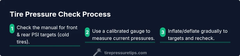 Front and rear pressures are usually different and model-specific. Always follow the manual’s distinct targets for each tire rather than assuming equality.