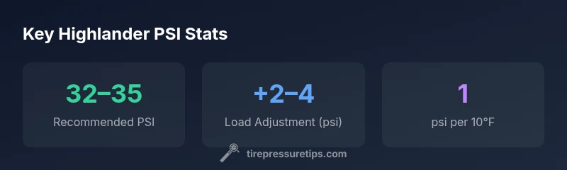 There isn’t a single universal PSI for every 2022 Toyota Highlander. The exact tire pressure is printed on the door jamb placard and in the owner's manual, and it varies by tire size and load. In general, Highlanders common recommendation sits in the mid‑30s psi range, but always verify your vehicle’s placard for accuracy.