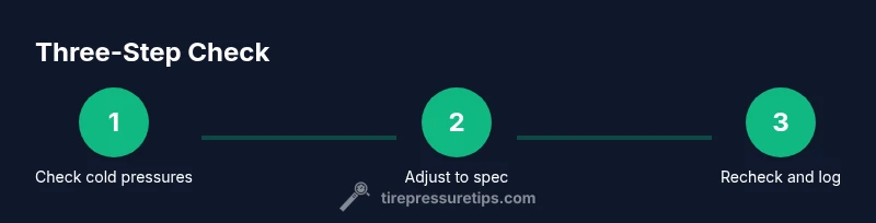 If a tire is low, add air in small increments and recheck after each addition. If high, release air gradually until you reach the target. Re-check all tires after adjustment to confirm consistency.