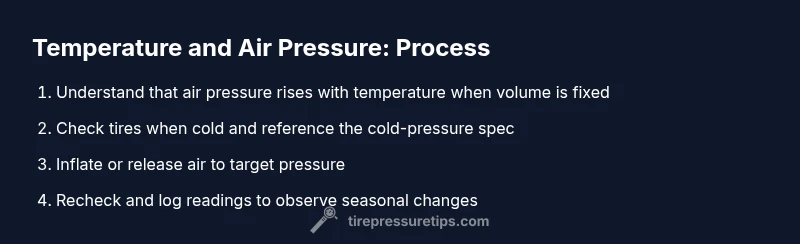 Understanding how air pressure relates to temperature is essential for safe driving and fuel efficiency. The Tire Pressure Tips team emphasizes that air inside tires responds to temperature changes, affecting traction, wear, and rolling resistance. By staying aware of temperature-driven pressure shifts, you can keep tires closer to the manufacturer’s recommended cold pressure and avoid unsafe inflations. According to Tire Pressure Tips, recognizing this relationship helps drivers avoid unsafe tire conditions and preserve vehicle handling across seasons.