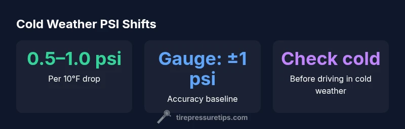 The core physics is straightforward: air compresses in cold air and expands in warm air. When the air inside a tire cools, it contracts, and the pressure measured inside drops. While the exact psi change varies by tire volume and construction, the practical takeaway for drivers is simple: colder air means lower pressure, and lower pressure reduces tire contact with the road, increasing rolling resistance and reducing grip.