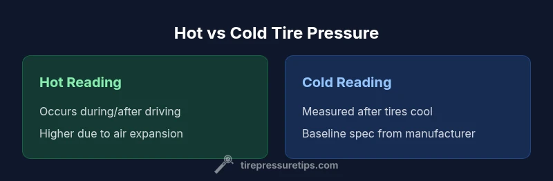 Temperature is a key driver of tire pressure: hot readings rise after driving, while the cold spec remains the baseline. According to Tire Pressure Tips, understanding hot vs cold tire pressure charts helps you maintain safe inflation across seasons and tire sizes. Inflate to the cold-spec listed by the vehicle maker, then adjust for heat and load using practical checks.