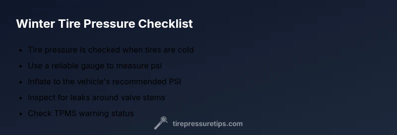 Create a simple winter routine: check tire pressure weekly or after significant temperature changes, and adjust to the vehicle’s recommended psi. Inspect tires for cracks, bulges, or visible damage during each check. Rotate tires as recommended to promote even wear, and replace tires that show excessive wear. Keep the spare tire pressure in check as part of a complete winter readiness plan. Consistency is the best defense against winter tire issues.