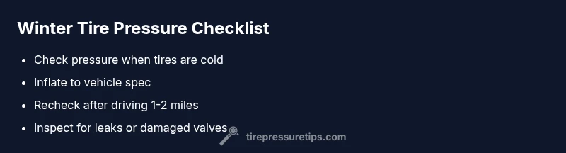 - Gather tools: digital gauge, portable inflator, and a spare gauge for cross-checking. 2) Ensure tires are cold before measurement. 3) Read baseline PSI on each tire and compare to the manufacturer's spec. 4) Inflate to recommended PSI, checking after inflation. 5) Recheck all four tires to confirm uniform pressure. 6) Inspect valve stems and tire beads for signs of slow leaks using soapy water. 7) If TPMS remains lit after inflation, inspect sensors or have the system scanned by a professional. 8) Schedule a winter check with a shop if the light persists. 9) Maintain regular checks during winter to prevent repeated underinflation.
